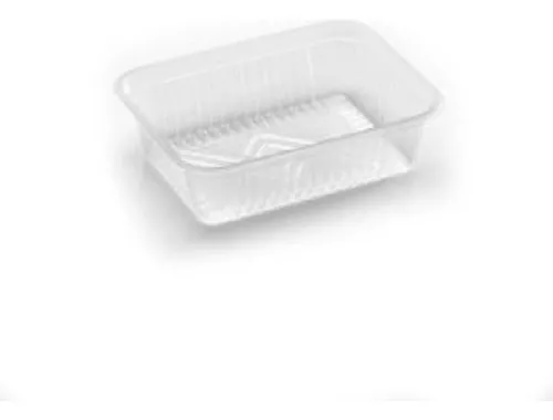 Bandeja liviana apta microonda 103.Medida 17 x 14 x 5. Traslúcida. Material, plastico.