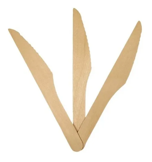 Cuchillo de bambú en bolsa de 25 unidades, de 17cm y tipo serrucho, en color marrón claro.
