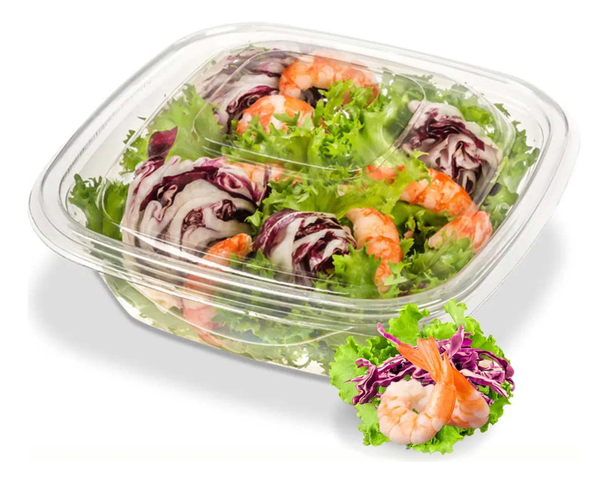 Medidas (mm) Base: 190x 190 x 65. Tapa: 190 x 190 x 25. Capacidad 1050ml. Excelente resistencia al impacto Excelente transparencia y brillo Muy buena resistencia química Alta barrera al vapor de agua Reciclable post consumo Excelente performance en frío (-18°c) Muy buena barrera a los gases Muy buena resistencia química No apto para microondas