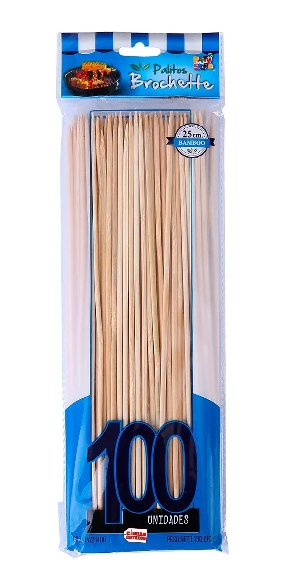 Palitos Brochette Pinchos Bamboo Madera 25cm. * Excelente calidad. * Palillos brochette de bamboo. * Ideales para el hogar, restaurantes, catering, eventos, gastronomía, e incluso manualidades.