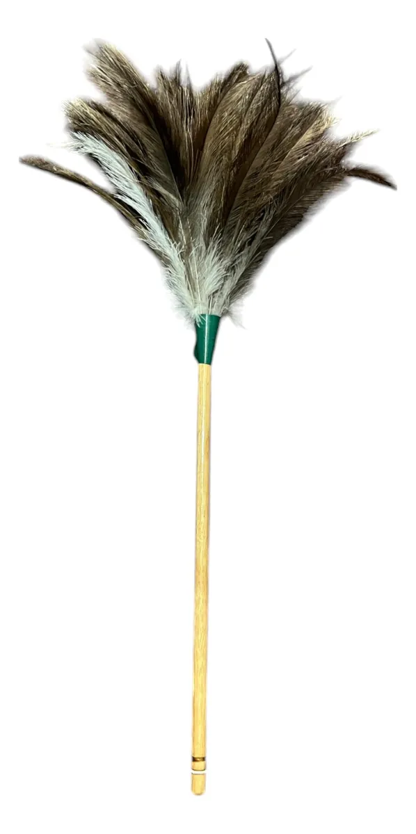 Fabricado con plumas, este plumero ofrece una experiencia de limpieza eficaz y delicada. Su cabezal de 24 cm de largo permite alcanzar áreas difíciles, asegurando que cada rincón de tu hogar reciba la atención que merece. Con un largo total de 50 cm, su diseño es práctico y fácil de usar.
