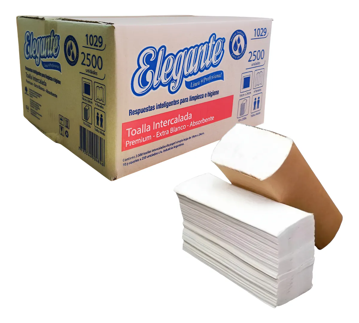 Toallas intercaladas para dispenser. Excelente calidad y absorcion. • MEDIDA: 19×24 • COLOR: blanco • HOJA: simple • CANTIDAD: 2500 toallas por caja